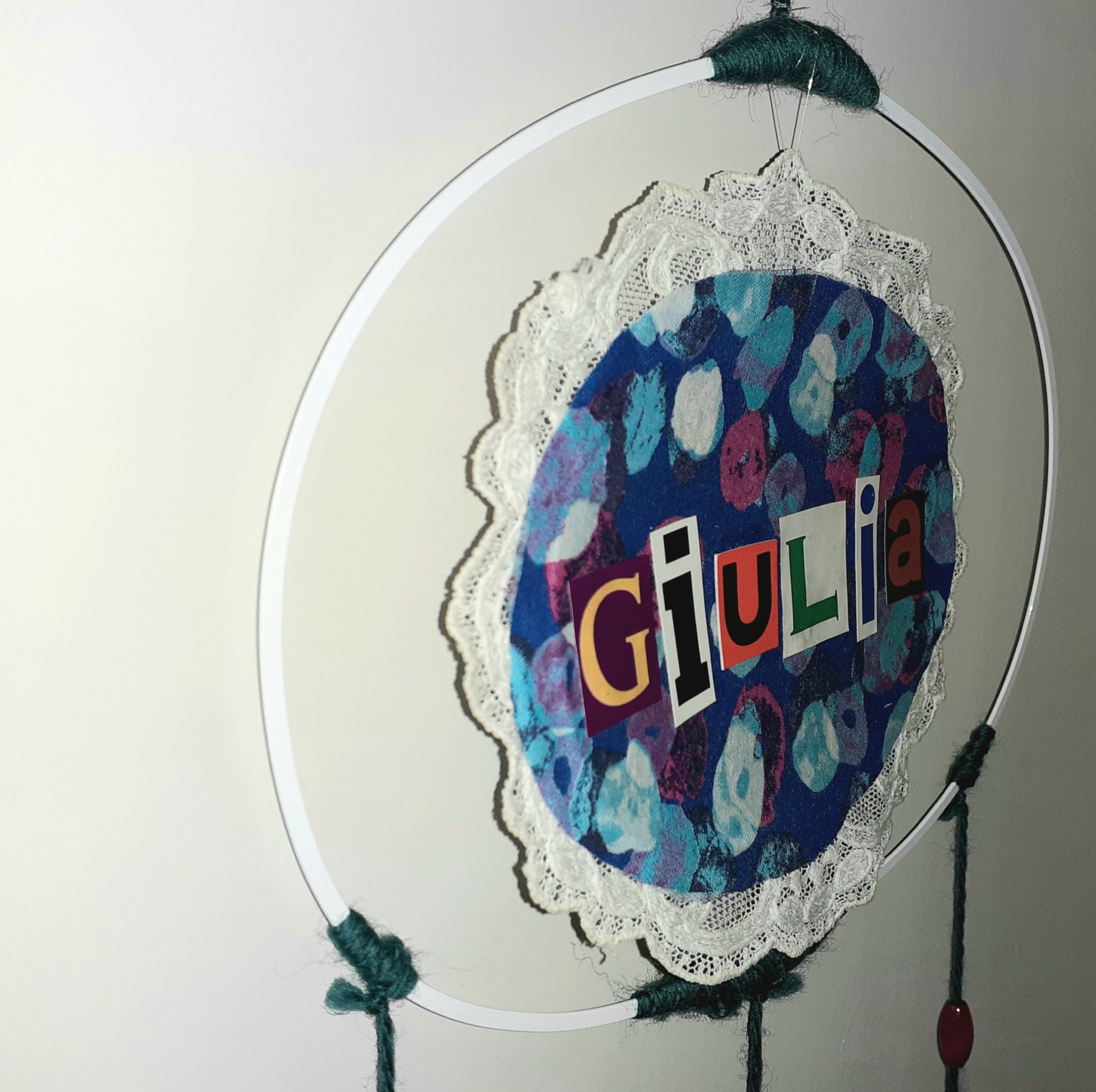 Matériaux : tissus, dentelle, fil en laine, fil en nylon, perles en bois, papier, carton, baguettes en fer, colle d’amidon